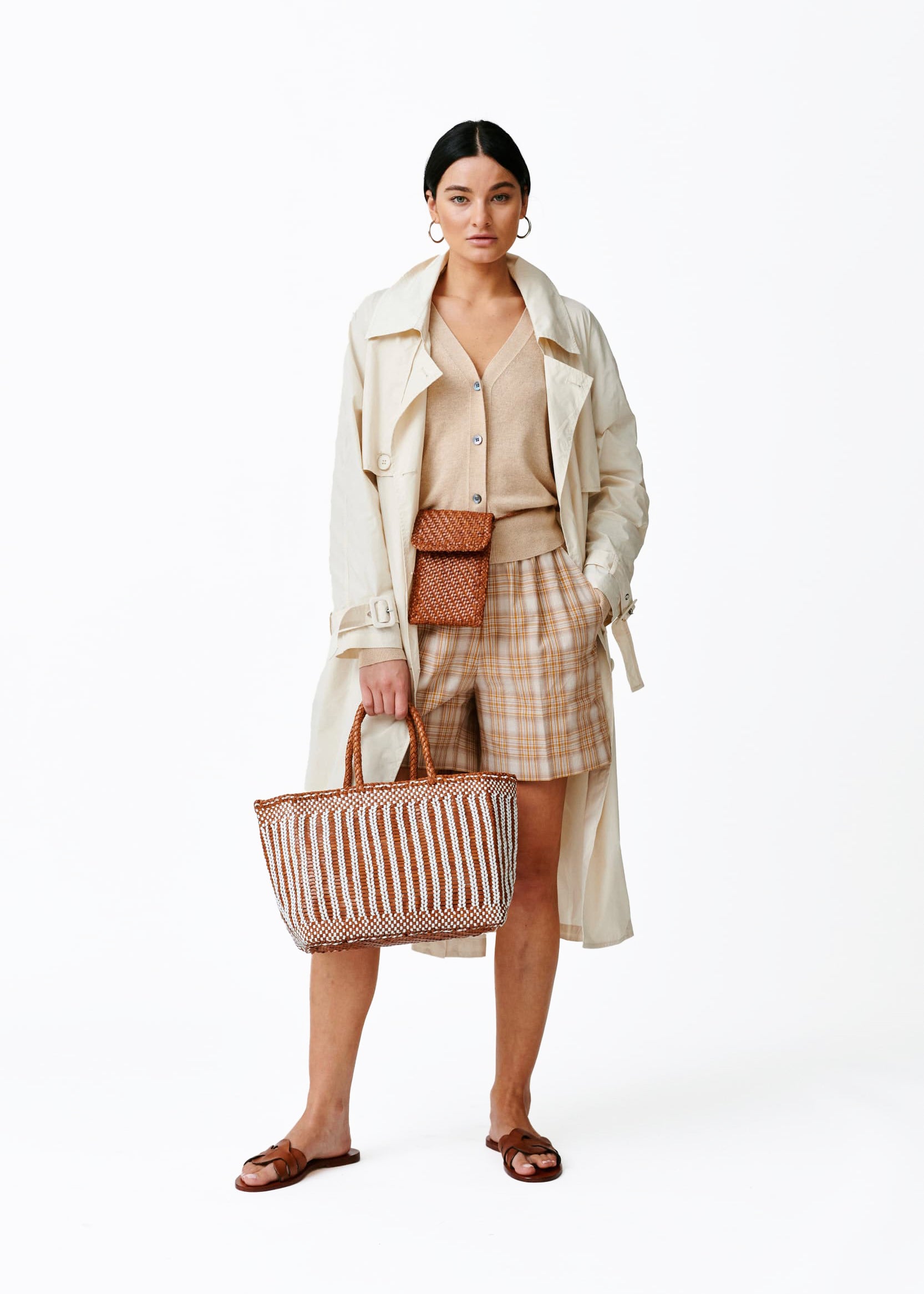 Dragon Diffusion Woven Wide Belt Tan/White