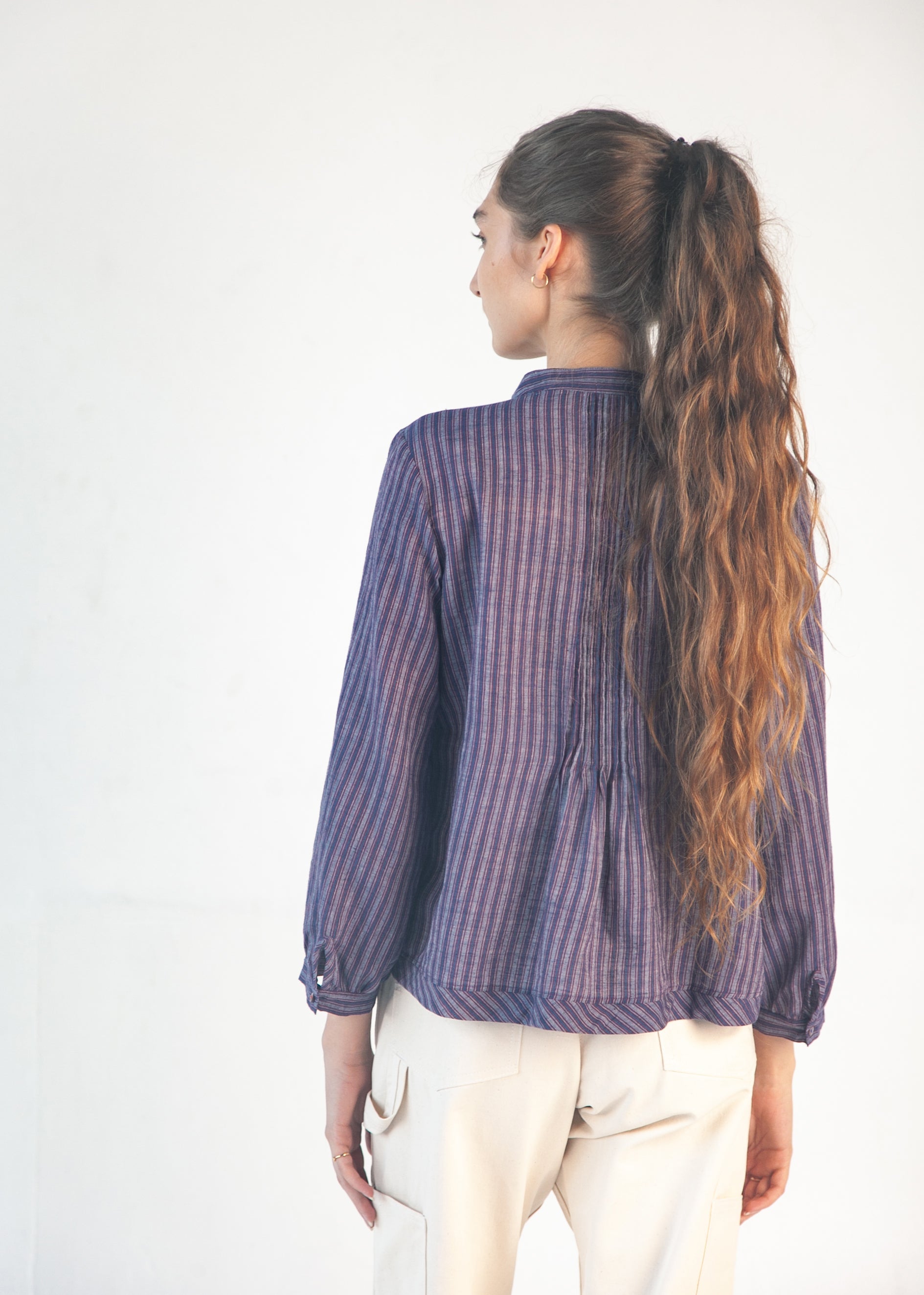 Alma Ticking Stripe Top - Blue/Maroon